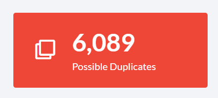 The red Possible Duplicates card opens Crimson's enhanced mass merging Deduping Tool, which allows you to merge multiple pairs of duplicate records at once. This tool now includes individuals and organizations, making it easier than ever to maintain a clean, accurate database.