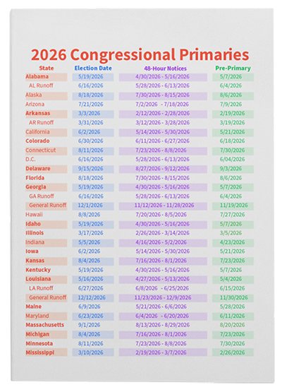 With the 2026 primary season underway, now is the time to get your reporting calendar in order. If you are working on a federal race, you need to follow regular FEC filing deadlines and stay on top of the periods requiring 48-Hour Notices for donations of $1,000 and over.
